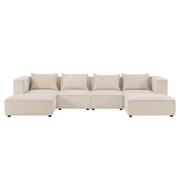 De Domas XXL modulaire zitbank met corduroy hoes in beige is het perfecte toevluchtsoord in je woonkamer. Trakteer uzelf op pure ontspanning in het modern vormgegeven woongedeelte met 2 hockers, armleuningen en kussens. En beleef ontspannende uurtjes met uw dierbaren. Dankzij het modulaire ontwerp combineer je de bank eenvoudig tot een ander formaat.